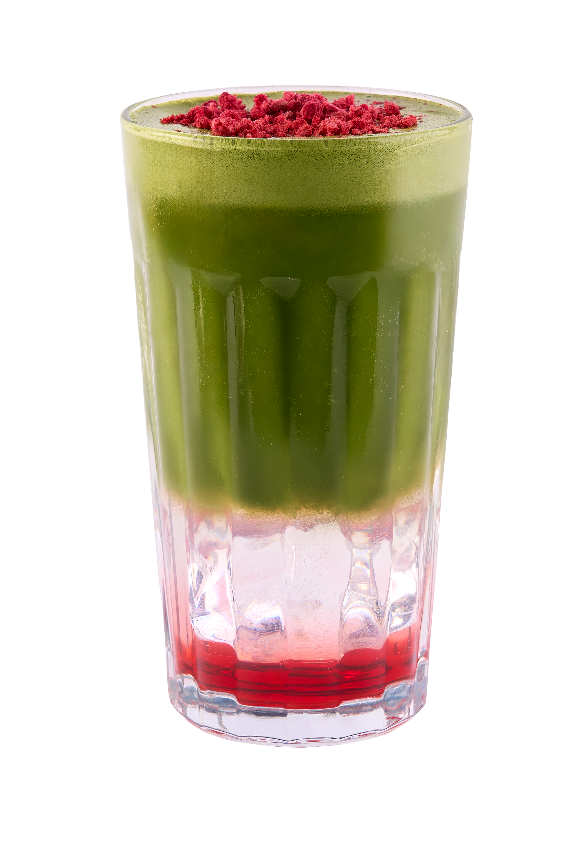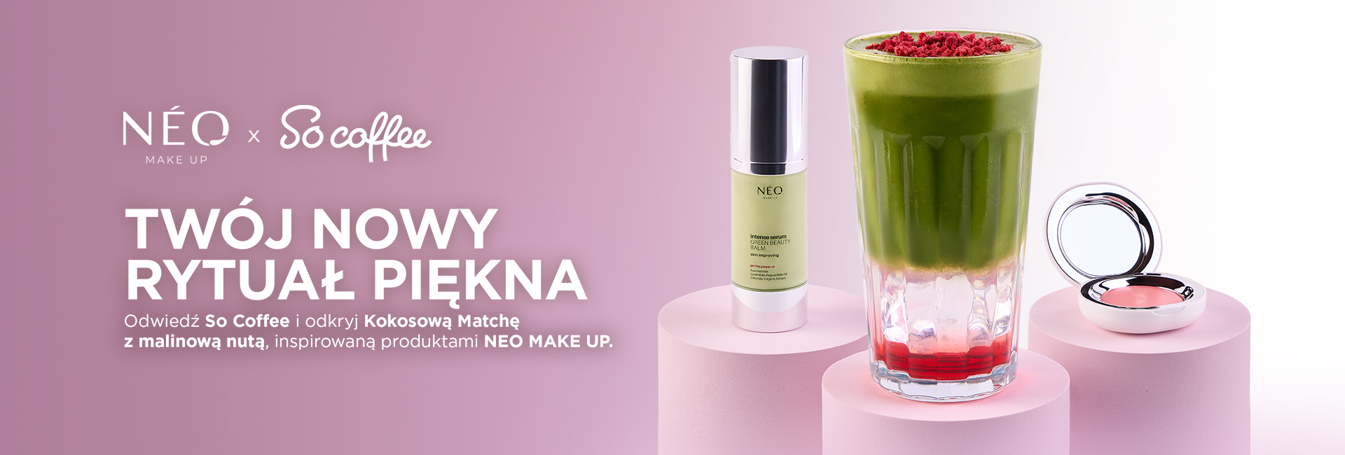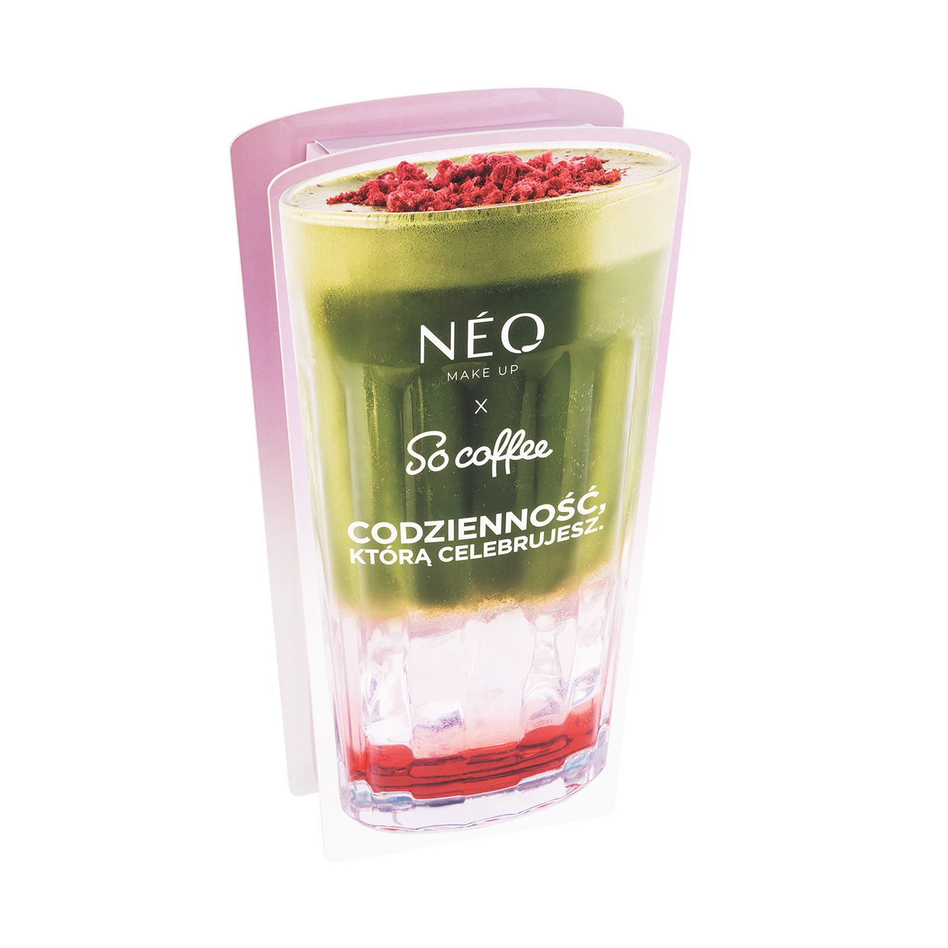 Zamów napój, zarezerwuj czas tylko dla siebie i delektuj się rozkosznym smakiem matchy z malinami, inspirowanej produktami NEO MAKE UP.